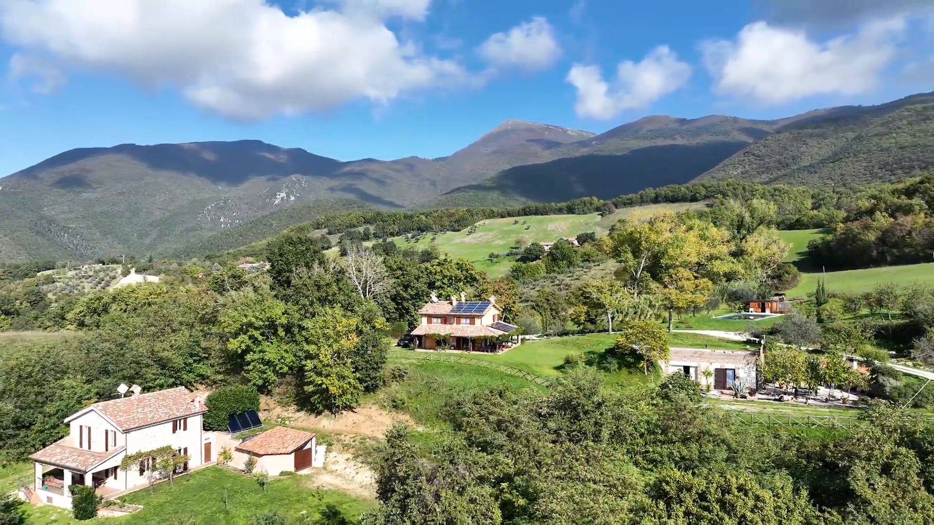 Surrounded by the high hills of the Apennine Mountains at the skirt of San Vicino Mount with an outstanding view of the Esino Valley, Casa Baldoni offers two independent restored houses with a large grassed garden, private pool, BBQ area and volleyball court.